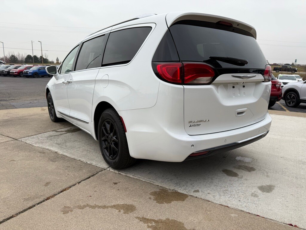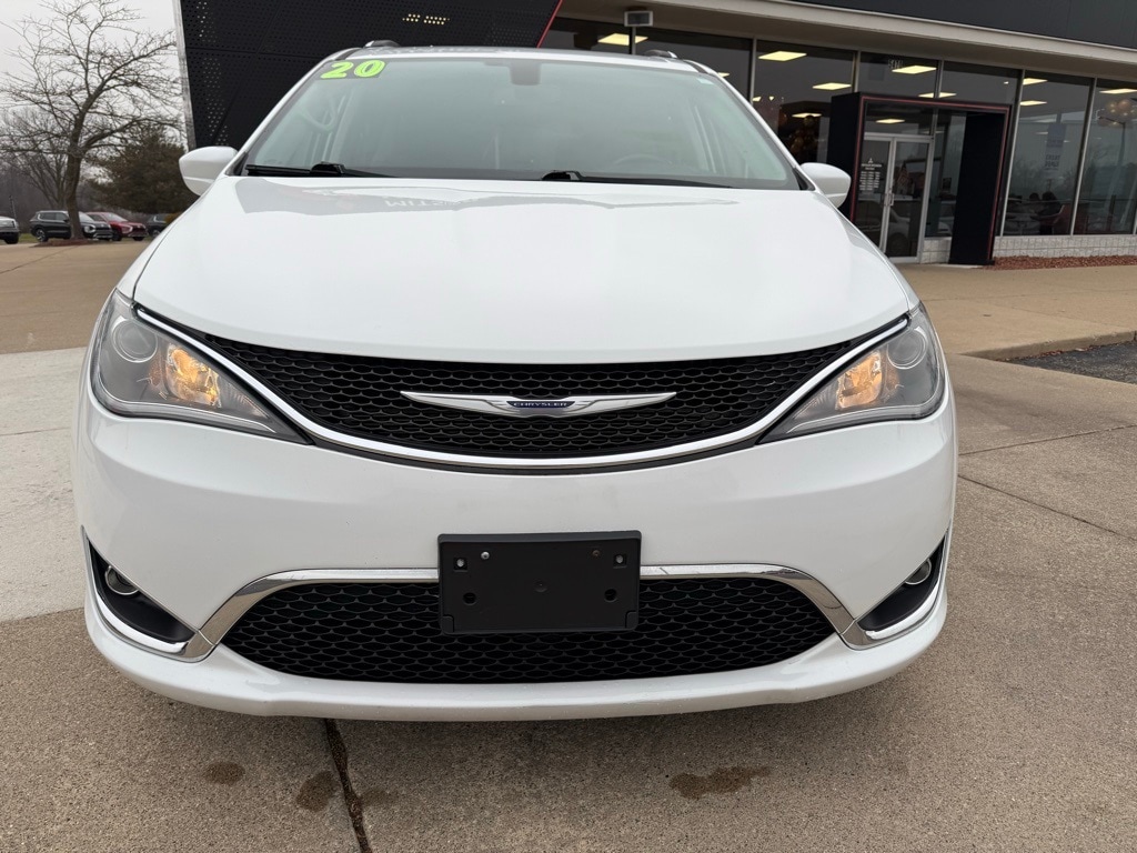 2020 Chrysler Pacifica Touring L Premium 7-Passenger Minivan Loaded with Comfort, Safety, and Technology Bright White Clearcoat, Leather seats, Heated front seats, Heated steering wheel, Power driver seat with lumbar support, Third-row seating (7-passenger capacity), Auto-dimming rearview mirror, Illuminated vanity mirrors, Rear defrost, Two 12V power outlets, Apple CarPlay and Android Auto, Bluetooth capability, Satellite radio, Auxiliary audio input, Smart device integration, AM/FM radio and MP3 capability, Back-up camera, Universal garage door opener, Chrome side window trim, Fog lamps, Rear spoiler, Heated power mirrors, Intermittent and variable intermittent wipers, Automatic headlights and daytime running lights, Perimeter/approach lighting, Remote engine start, Keyless entry and keyless start, Power windows and power door locks, Power liftgate and remote trunk release, Power sliding passenger doors (third and fourth doors), Cruise control, Multi-zone climate control, Rear air conditioning, Aluminum wheels