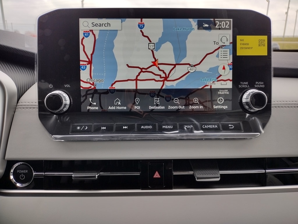 The exterior features LED headlights, daytime running lights, fog lights, and tail lights, along with automatic headlights, headlight washers, heated power-folding mirrors with reverse tilt, rain-sensing wipers, a wiper de-icer, a panoramic sunroof, silver roof rails, a body-color rear spoiler, and 20-inch two-tone alloy wheels. A power liftgate with adjustable height is included.
