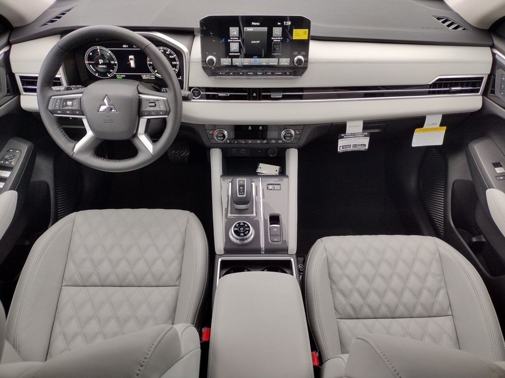 This Graphite Gray 2025 Mitsubishi Outlander PHEV SEL S-AWC is powered by a 2.4L DOHC MIVEC 4-cylinder engine with twin electric motors, a 20.0 kWh lithium-ion battery, regenerative braking, and 120V/240V plus DC fast-charging capability. It uses a single-speed transmission and Twin Motor S-AWC all-wheel control.