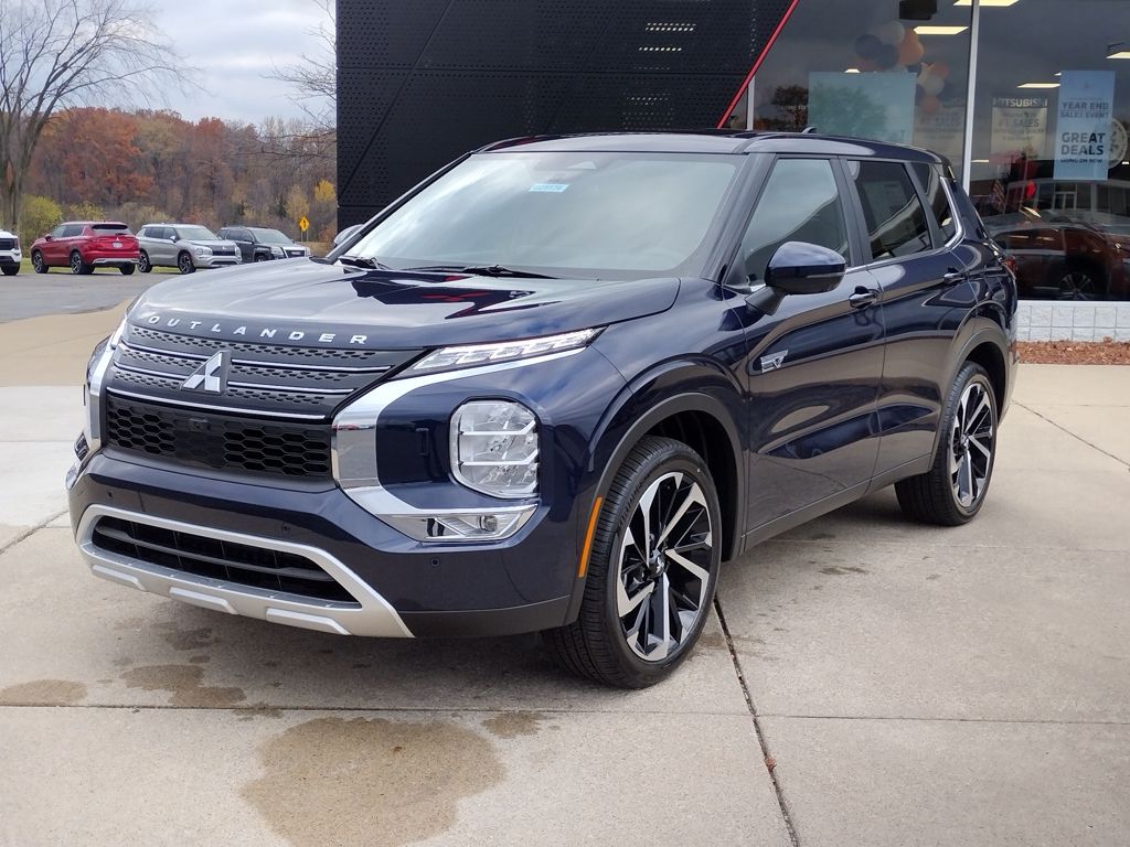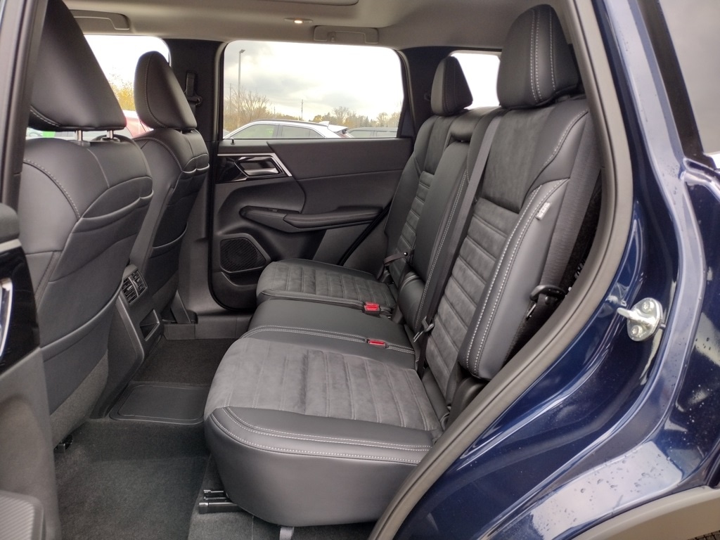 This Cosmic Blue Metallic 2025 Mitsubishi Outlander PHEV SE S-AWC is powered by a 2.4L DOHC MIVEC 4-cylinder engine with twin electric motors, a 20.0 kWh lithium-ion battery, single-speed front and rear reduction gearboxes, and Super All-Wheel Control.