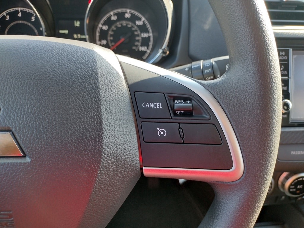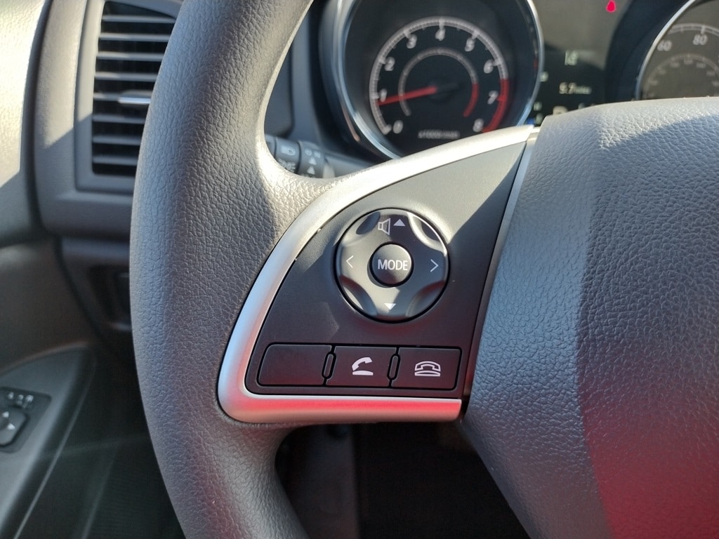 Inside, it offers fabric seating with a 6-way adjustable driver seat and 4-way adjustable passenger seat. A 7-inch display audio system with AM/FM, Bluetooth, and four speakers is included, along with steering-wheel audio and phone controls, a USB port, rearview camera, ECO indicator, drive mode selector, automatic climate control, rear heater ducts, power windows, remote keyless entry, and an auto-dimming rearview mirror.