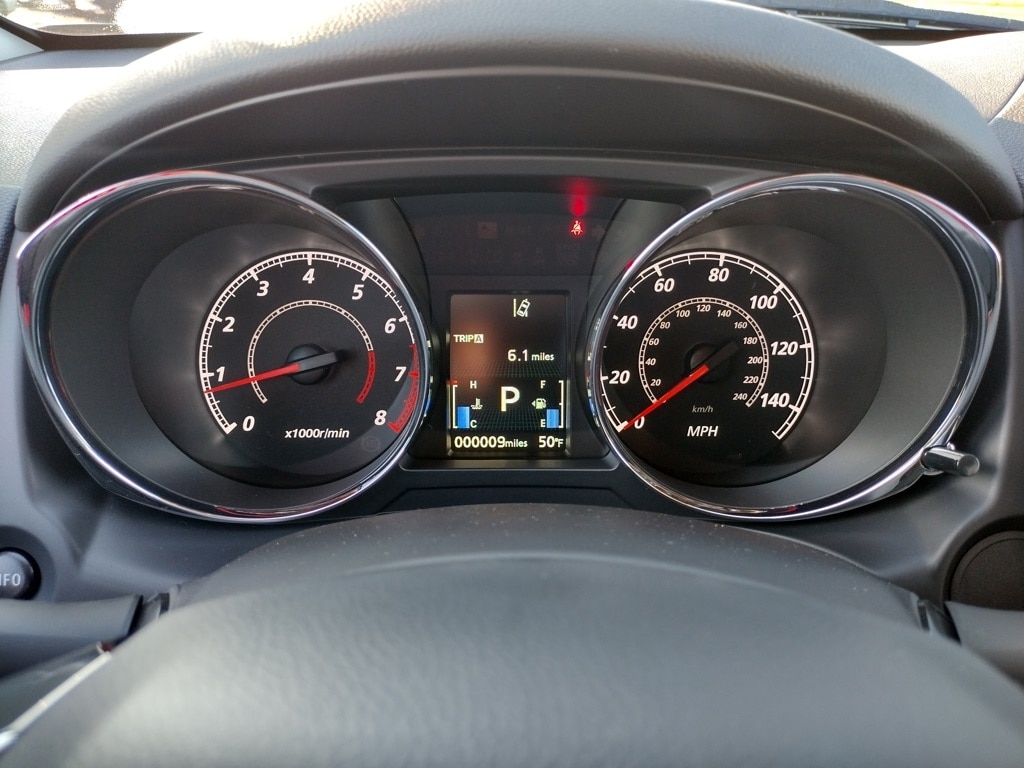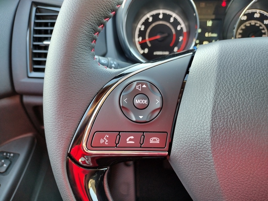 Inside, it offers black fabric seats with red stitching, heated front seats, a 6-way adjustable driver seat, and a 4-way passenger seat. Convenience features include an 8-inch Smartphone-link Display Audio system with Apple CarPlay, Android Auto, Bluetooth, SiriusXM (3-month trial), USB ports in front and rear, automatic climate control, a rearview camera, remote keyless entry, power windows, and an auto-dimming rearview mirror.