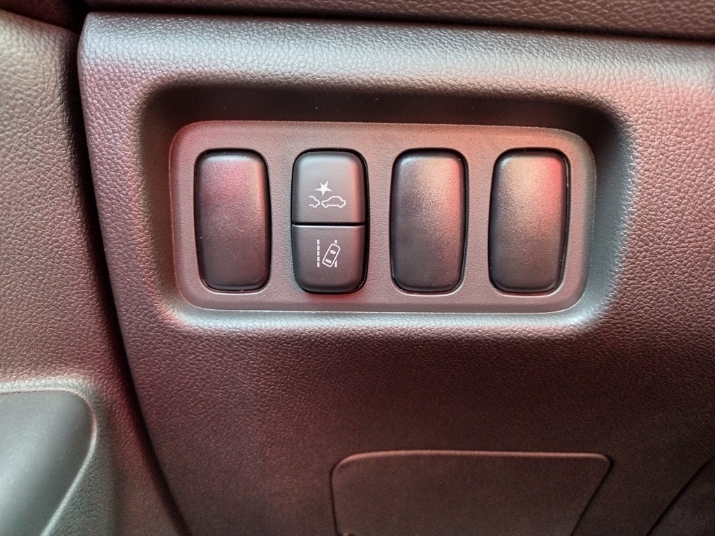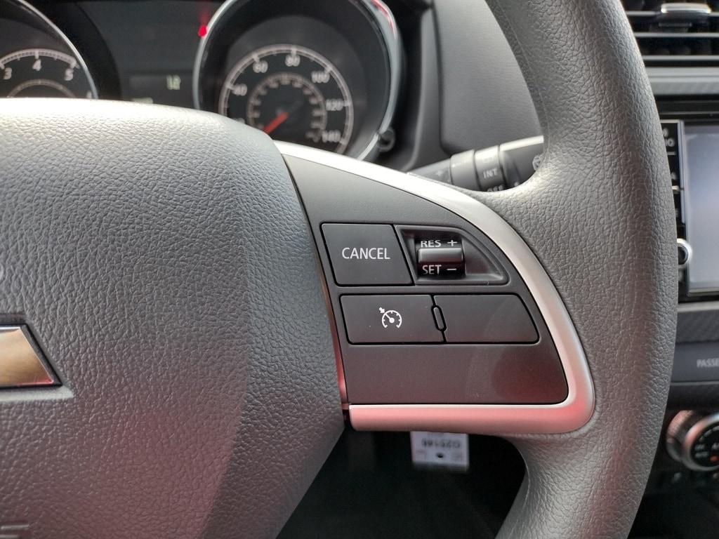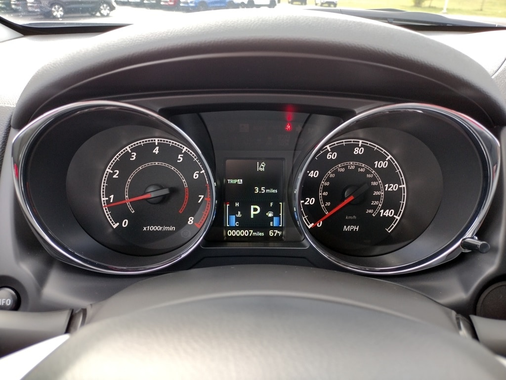 The interior offers fabric seating with a 6-way driver and 4-way passenger seat, automatic climate control, an auto-dimming rearview mirror, power windows, rear heater ducts, and keyless entry. Technology features include a 7-inch display audio system, Bluetooth connectivity, steering-wheel audio and phone controls, a front USB port, a rearview camera, and a drive mode selector.