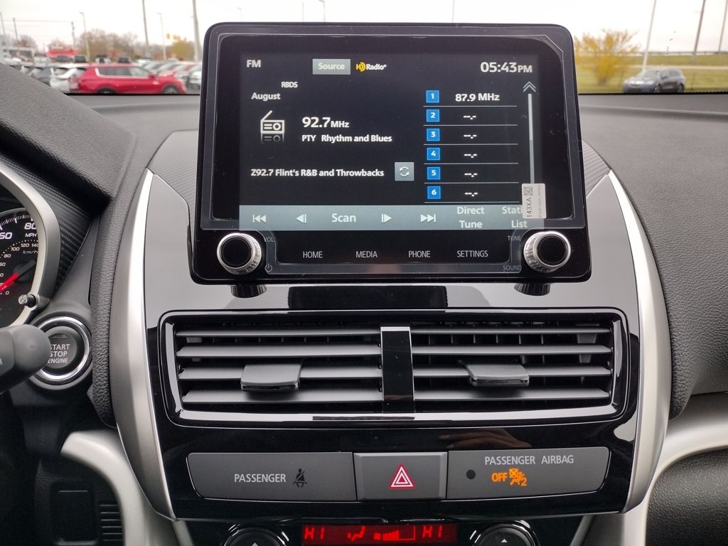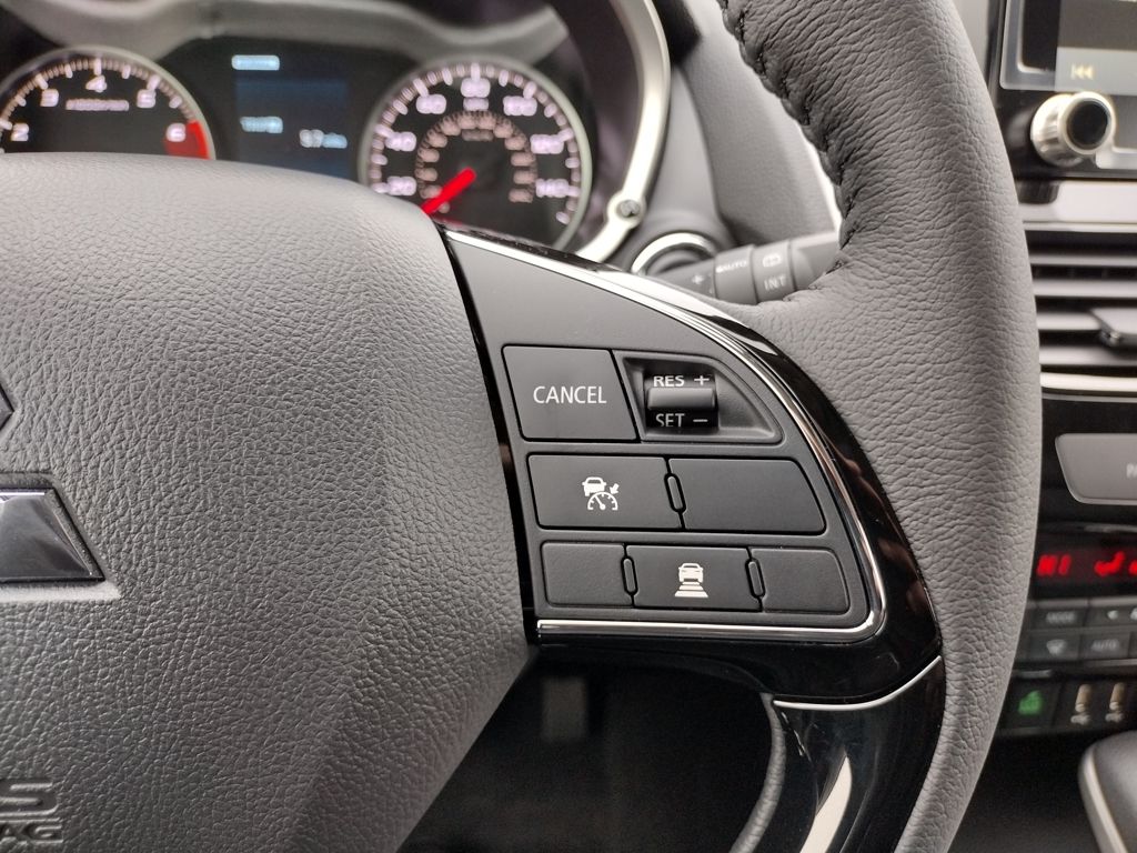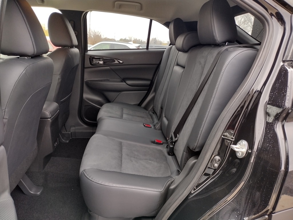 Inside, it offers an 8-way power driver seat, 4-way adjustable passenger seat, heated front seats, and synthetic suede seating. Technology includes an 8-inch Smartphone-Link Display Audio system with Apple CarPlay, Android Auto, SiriusXM, Mitsubishi Connect services, six speakers, dual-zone automatic climate control, FAST-Key entry, and a hands-free power tailgate.