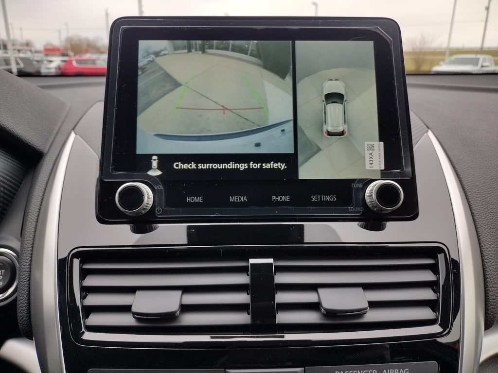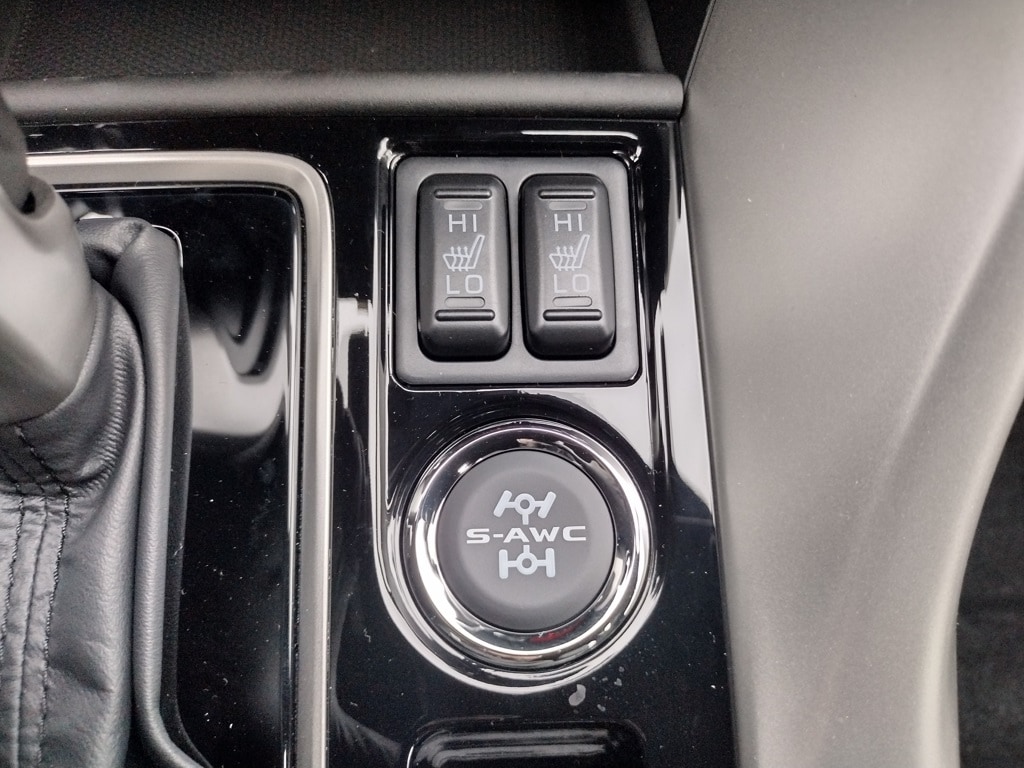Inside, the cabin offers leather-appointed seating surfaces, an 8-way power adjustable driver and passenger seat, and heated front seats. Dual-zone automatic climate control, FAST-Key entry, remote keyless entry, and a hands-free power tailgate enhance convenience. Technology includes an 8.0-inch Smartphone-Link Display Audio system with Apple CarPlay, Android Auto, SiriusXM with a 3-month trial, Mitsubishi Connect with included trial periods, six speakers, and a multi-view camera system.