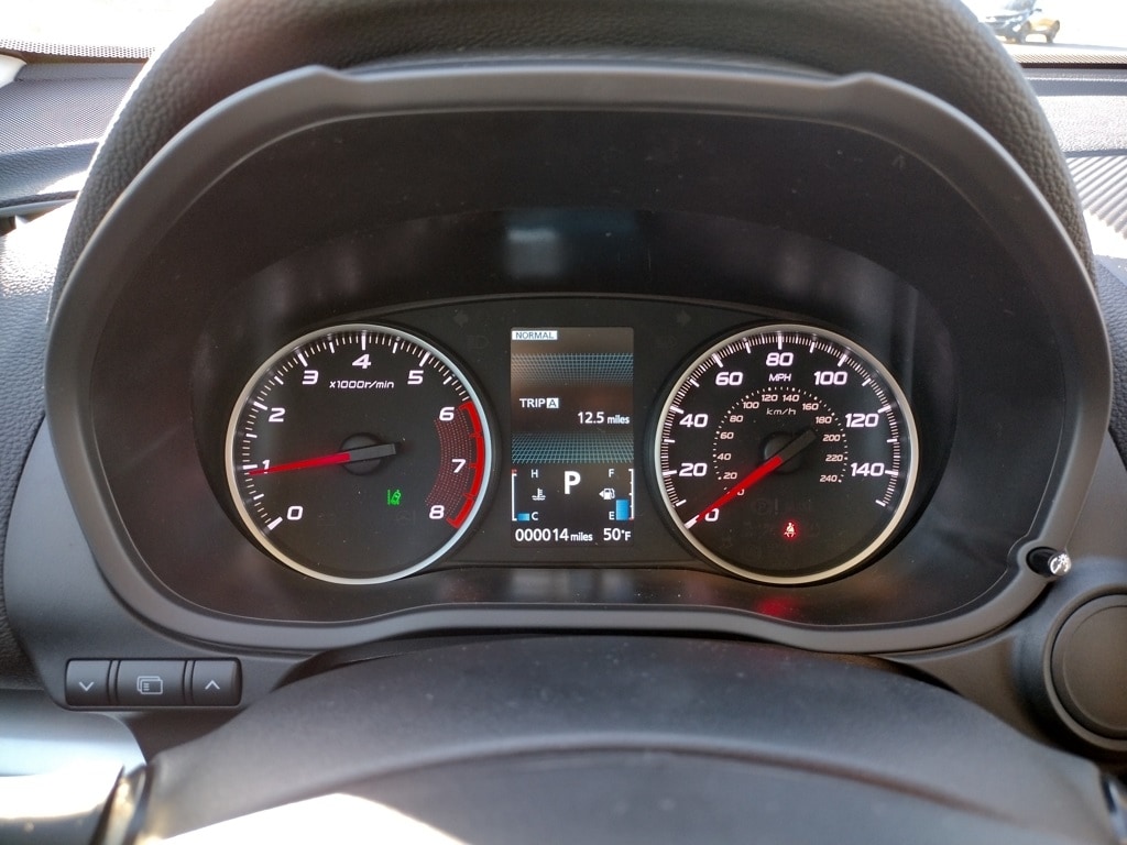 Inside, the cabin offers fabric seating surfaces with a 6-way adjustable driver seat and 4-way adjustable passenger seat. Convenience and technology features include an 8-inch Smartphone-link Display Audio system with Apple CarPlay, Android Auto, SiriusXM with a 3-month trial, remote keyless entry, four speakers, and an S-AWC drive-mode selector.