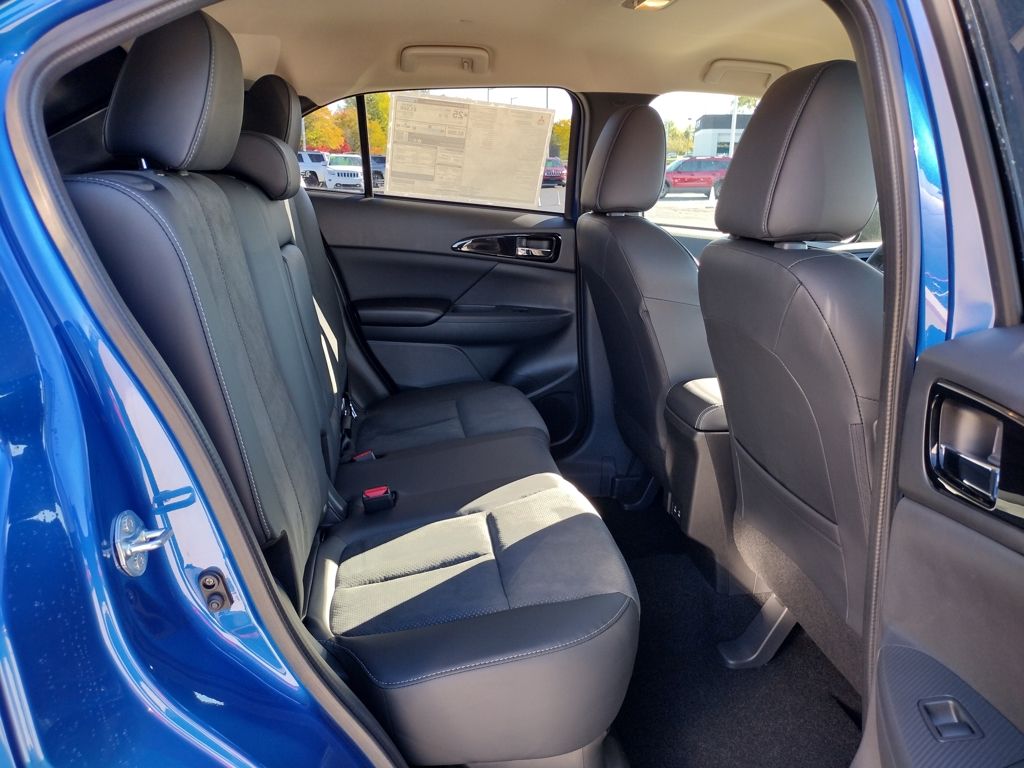 Inside, it offers an 8-way power-adjustable driver seat, a 4-way adjustable passenger seat, heated front seats, and synthetic suede seating surfaces. Technology includes an 8-inch Smartphone-Link Display Audio system with Apple CarPlay, Android Auto, SiriusXM with a 3-month trial, six speakers, Mitsubishi Connect with included trial periods, dual-zone automatic climate control, FAST-Key entry, remote keyless entry, and a hands-free power tailgate.