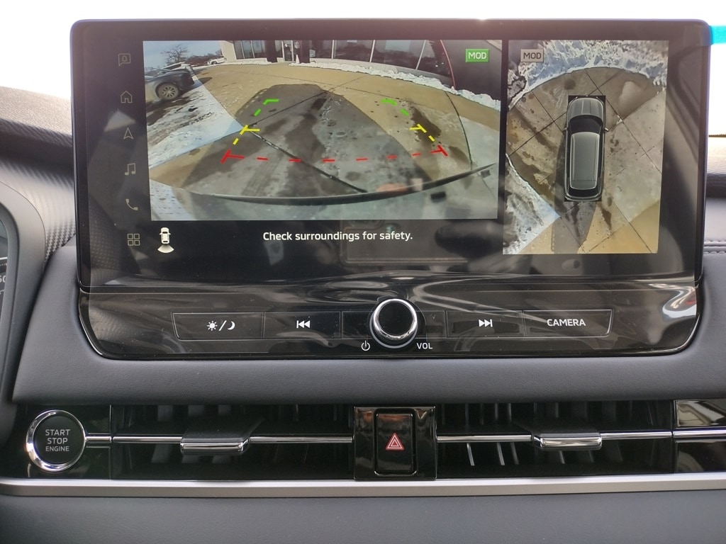 The interior offers seven-passenger seating with synthetic leather suede seating surfaces, heated front seats, and a heated leather-wrapped steering wheel. Technology includes a 12.3-inch Smartphone-Link Display Audio system with navigation, wireless Apple CarPlay and Android Auto, a Yamaha premium audio system, wireless smartphone charging, a multi-view camera system, dual-zone automatic climate control, FAST-Key entry with push-button start, and a power panoramic sunroof