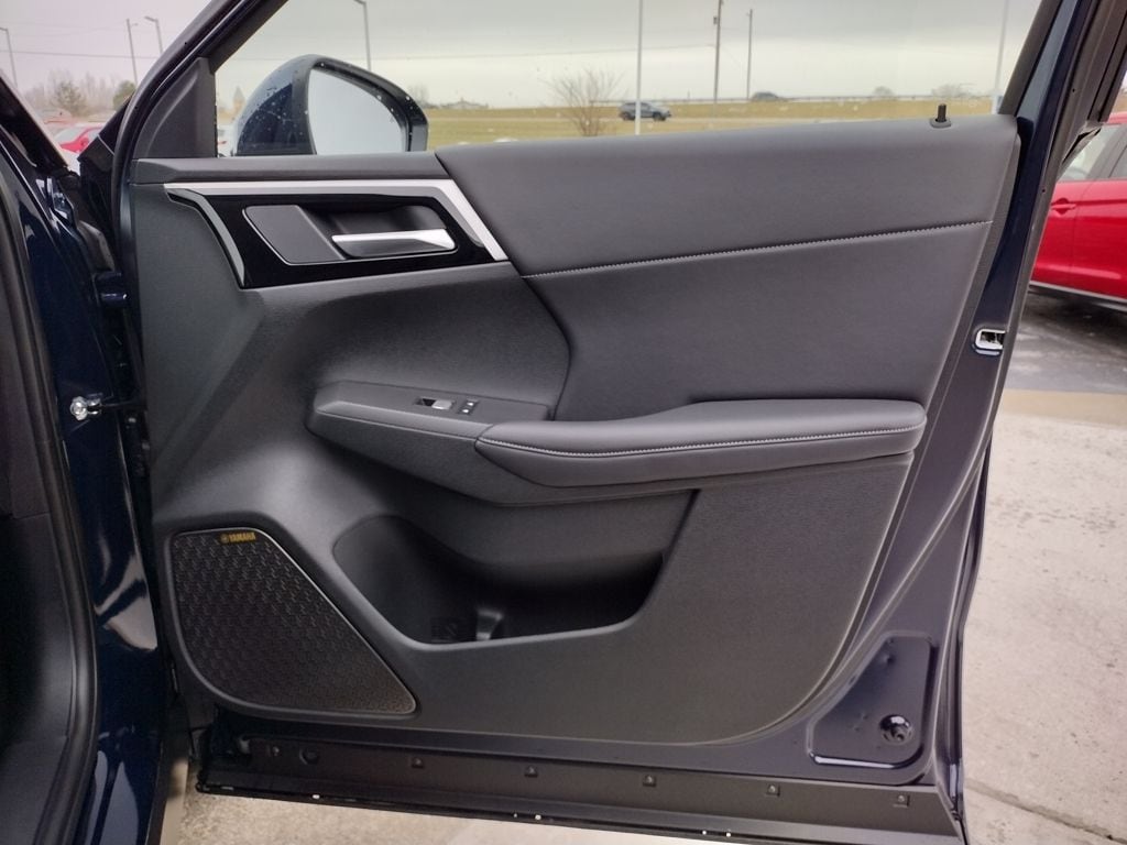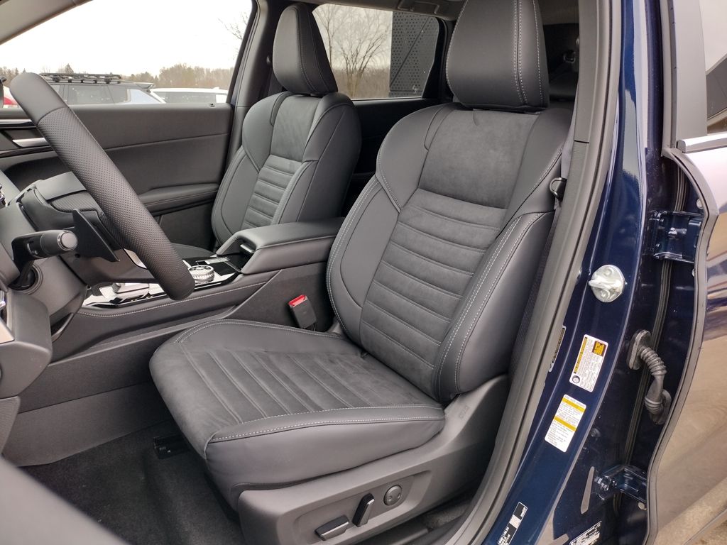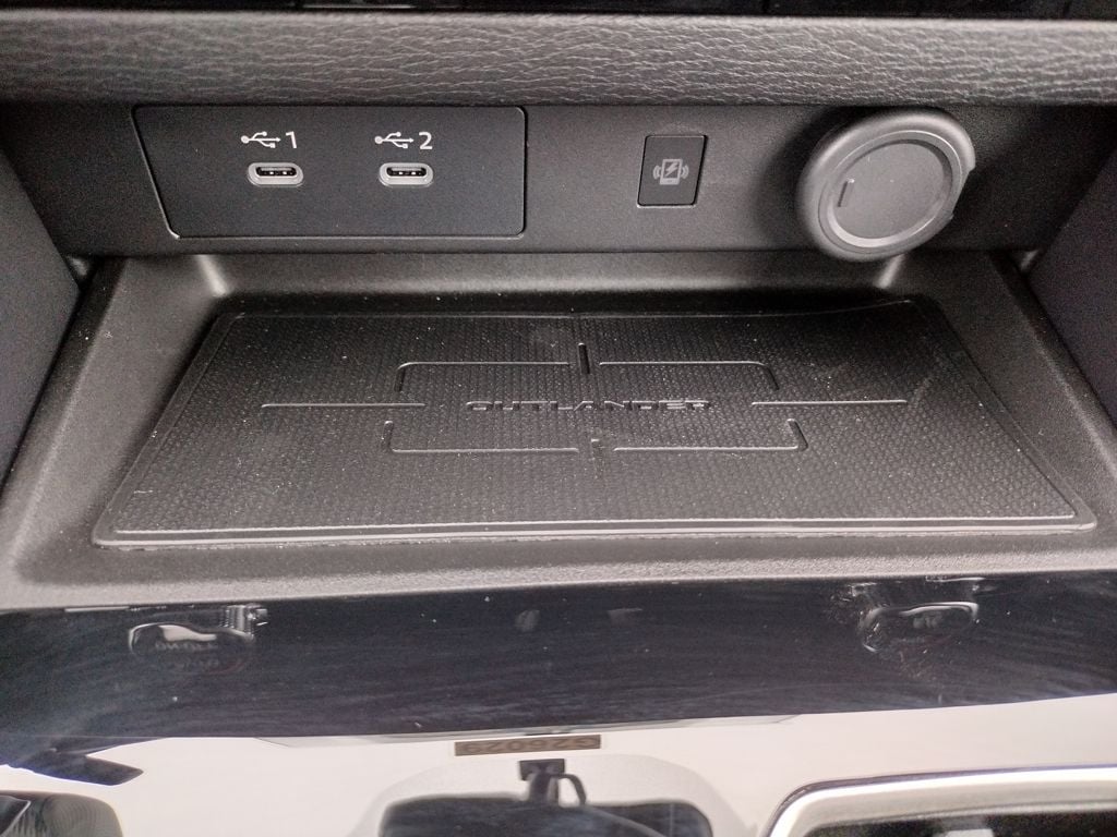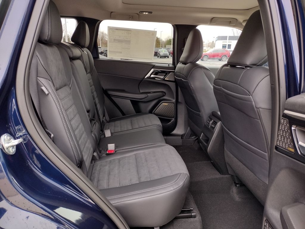 Inside, the Outlander SE offers seven-passenger seating with synthetic leather and suede seating surfaces, heated front seats, a heated leather-wrapped steering wheel, and dual-zone automatic climate control. Technology highlights include a 12.3-inch Smartphone-Link Display Audio system with navigation, a 12.3-inch full digital driver display, wireless Apple CarPlay, wireless Android Auto, a wireless smartphone charger, a multi-view camera system, FAST-Key entry with push-button start, and a Yamaha premium audio system.