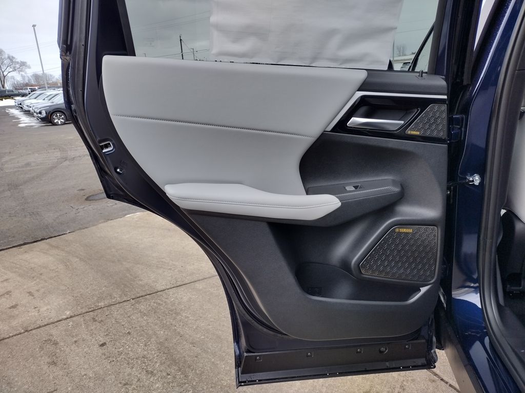 Inside, this seven-passenger SUV features synthetic leather suede seating surfaces, heated front seats, and a heated leather-wrapped steering wheel. Technology includes a 12.3-inch Smartphone-link Display Audio system with navigation, wireless Apple CarPlay and Android Auto, a smartphone wireless charger, multi-view camera system, dual-zone automatic climate control, FAST-Key entry with push-button start, and a drive mode selector with Tarmac, Gravel, Snow, Normal, Eco, and Mud modes. The SE Tech Package adds a 12.3-inch full digital driver display, Yamaha Ultimate 12-speaker audio system, and a power panoramic sunroof.