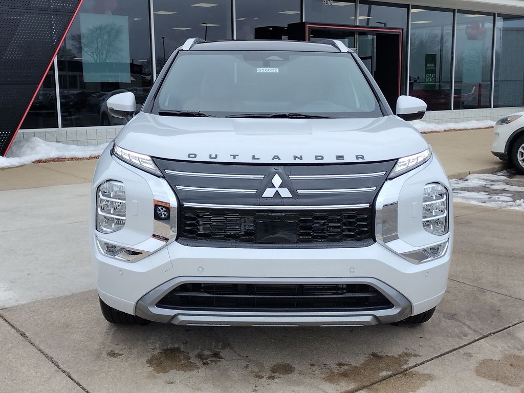 White Diamond/Black Roof 2026 Mitsubishi Outlander SEL Premium Package AWD CVT 1.5L I4 Turbocharged DOHC 16V LEV3-SULEV30 174hp AWD, 10.8" Heads-Up Display (HUD), 3rd row seats: split-bench, Accessory Grille Paint Protection Film, Accessory Tonneau Cover, Android Auto & Apple CarPlay, Auto High-beam Headlights, Auto-dimming Rear-View mirror, Automatic temperature control, Black Unique Spoiler, Digital Rearview Mirror with Rear Camera, Dynamic Sound Yamaha Ultimate, Emergency communication system: Mitsubishi Connect w/ 24-month trial, Exterior Parking Camera Rear, Front Bucket Seats, Front dual zone A/C, Fully automatic headlights, Garage door transmitter: HomeLink, Headlight cleaning, Heated and Ventilated Front Bucket Seats, Heated door mirrors, Heated front seats, Heated rear seats, Heated steering wheel, Navigation System, Power Liftgate, Power moonroof: Panoramic, Radio: AM/FM 12.3" Navigation with Smartphone-Link, Rain sensing wipers, Reclining 3rd row seat, Remote keyless entry, SEL Premium Package, Semi-Aniline Leather Appointed Seating Surfaces, Speed-Sensitive Wipers, Split folding rear seat, Turn signal indicator mirrors, Ventilated Seats, Welcome Package, Wheels: 20" Two-Tone Alloy.