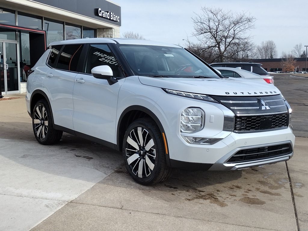 Diamond White 2026 Mitsubishi Outlander SE Tech Package AWD CVT 1.5L I4 Turbocharged DOHC 16V LEV3-SULEV30 174hp AWD, 12.3" Digital Driver Display, 3rd row seats: split-bench, Accessory All-Weather Floor Mats, Accessory Black Hood Badge, Accessory Grille Paint Protection Film, Accessory Reversible Cargo Mat, Accessory Scuff Plates, Accessory Tonneau Cover, Android Auto & Apple CarPlay, Auto High-beam Headlights, Auto-dimming Rear-View mirror, Automatic temperature control, Dynamic Sound Yamaha Ultimate, Emergency communication system: Mitsubishi Connect w/ 24-month trial, Exterior Parking Camera Rear, Front dual zone A/C, Fully automatic headlights, Garage door transmitter: HomeLink, Heated door mirrors, Heated Front Bucket Seats, Navigation System, Power Liftgate, Power Panoramic Sunroof, Radio: AM/FM 12.3" Navigation with Smartphone-Link, Rain sensing wipers, Reclining 3rd row seat, Remote keyless entry, SE Tech Package, Speed-Sensitive Wipers, Split folding rear seat, Synthetic Leather Seating Surfaces, Welcome Package, Wheels: 20" Two-Tone Alloy.