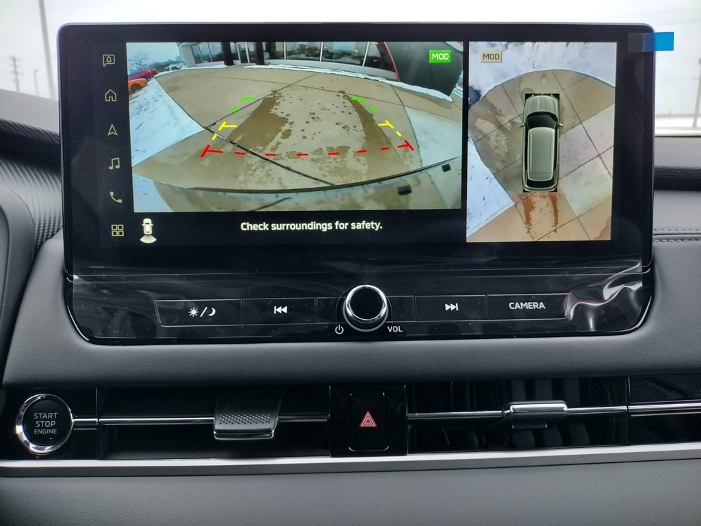 Inside, the cabin offers seven-passenger seating with synthetic leather and suede seating surfaces, heated front seats, a heated leather-wrapped steering wheel, and dual-zone automatic climate control. Technology highlights include a 12.3-inch Smartphone-Link Display Audio system with navigation, wireless Apple CarPlay and Android Auto, a wireless smartphone charger, a multi-view camera system, FAST-Key entry with push-button start, and a drive mode selector with multiple terrain settings.