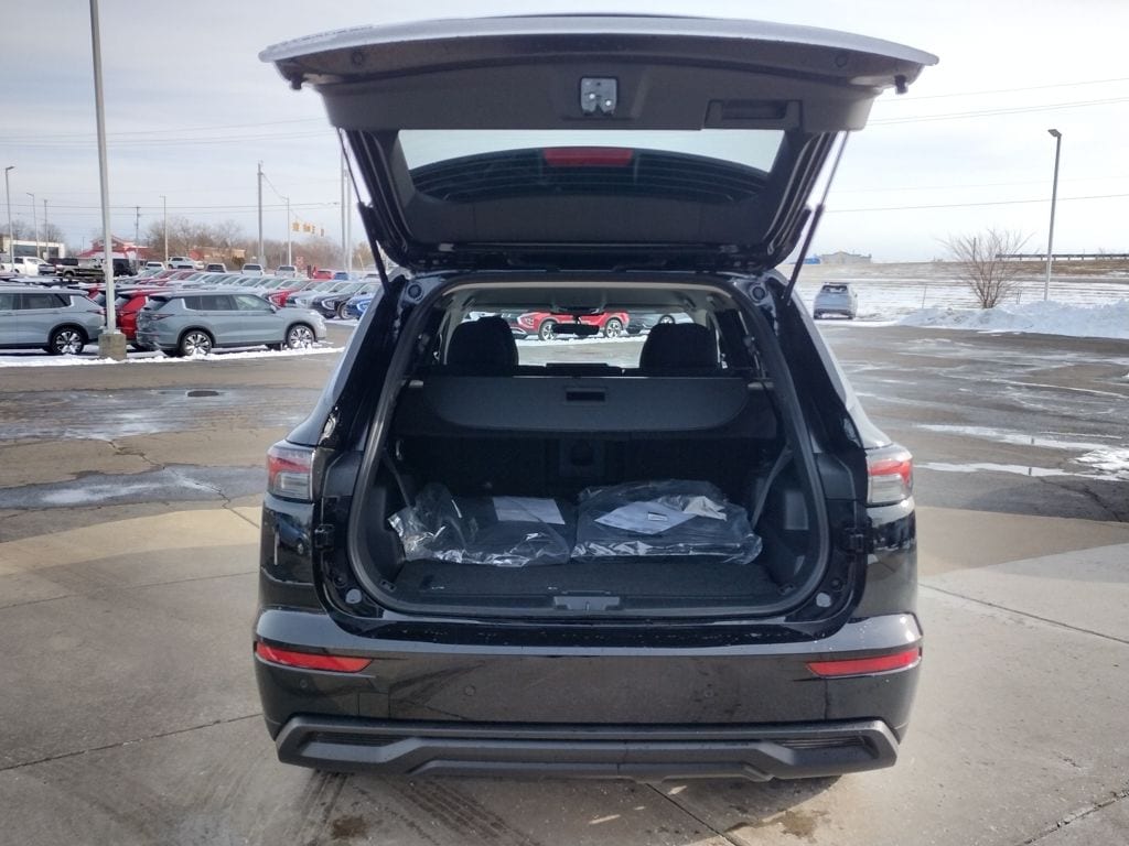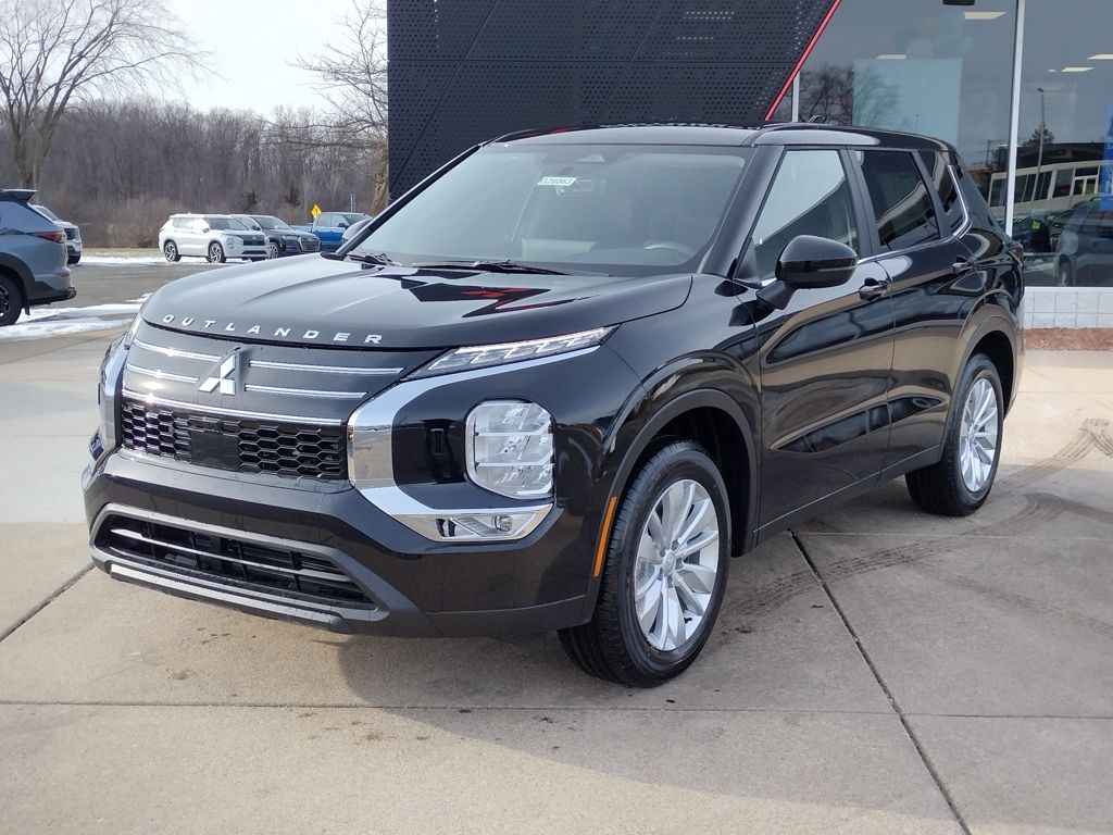 The 2026 Mitsubishi Outlander ES 1.5T S-AWC is powered by a 1.5L turbocharged 4-cylinder engine paired with an 8-speed CVT and Super All-Wheel Control. Finished in Labrador Black Pearl, it features LED headlights, LED daytime running lights, and 18-inch alloy wheels.