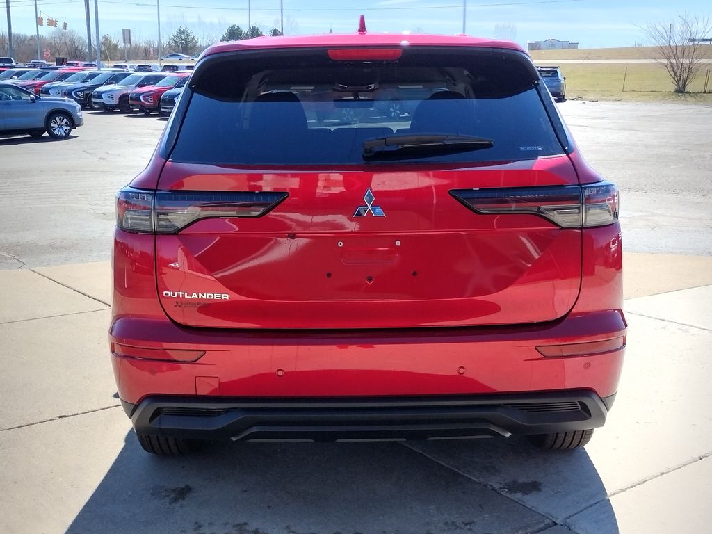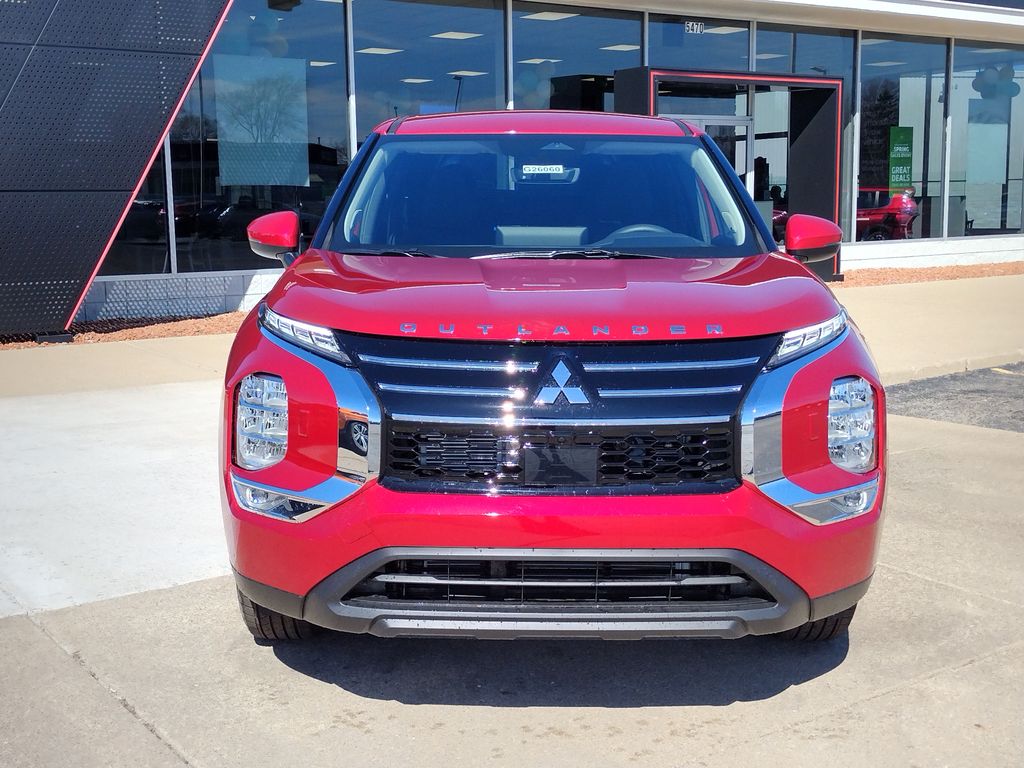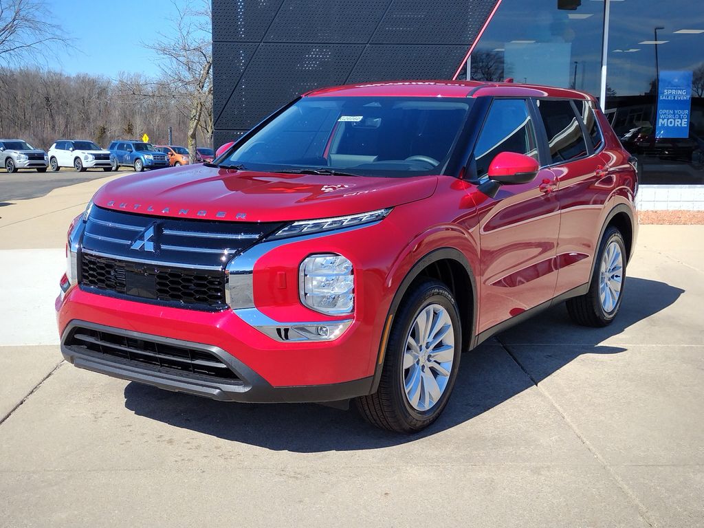 The 2026 Mitsubishi Outlander ES 1.5T S-AWC is equipped with a 1.5-liter turbocharged 4-cylinder engine paired with an 8-speed CVT and Mitsubishis Super All-Wheel Control system. Finished in Red Diamond, it features LED headlights, LED daytime running lights, LED fog lights, a chrome hood emblem, and 18-inch alloy wheels.