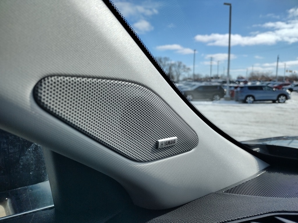Inside, the cabin offers seating for seven with synthetic leather suede seating surfaces. Comfort features include heated front seats, a heated leather-wrapped steering wheel, and dual-zone automatic climate control. Technology highlights include a 12.3-inch Smartphone-Link Display Audio system with navigation, wireless Apple CarPlay and Android Auto, a Yamaha premium audio system with eight speakers, wireless smartphone charging, FAST-Key entry with push-button start, a multi-view camera system, and a drive mode selector.