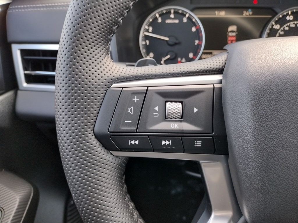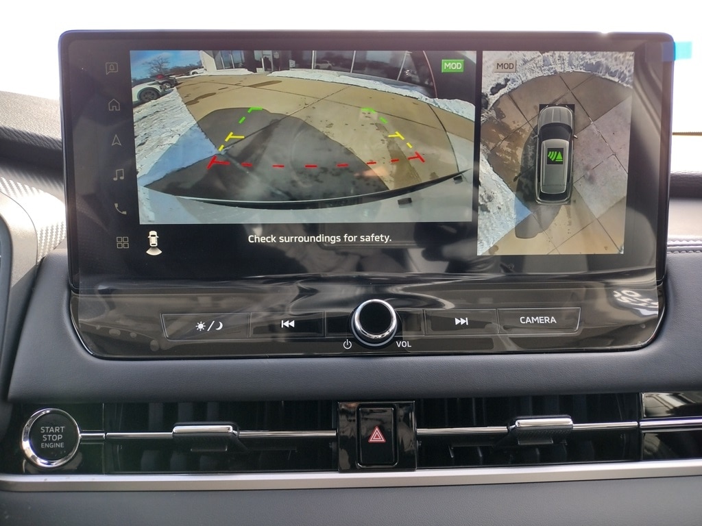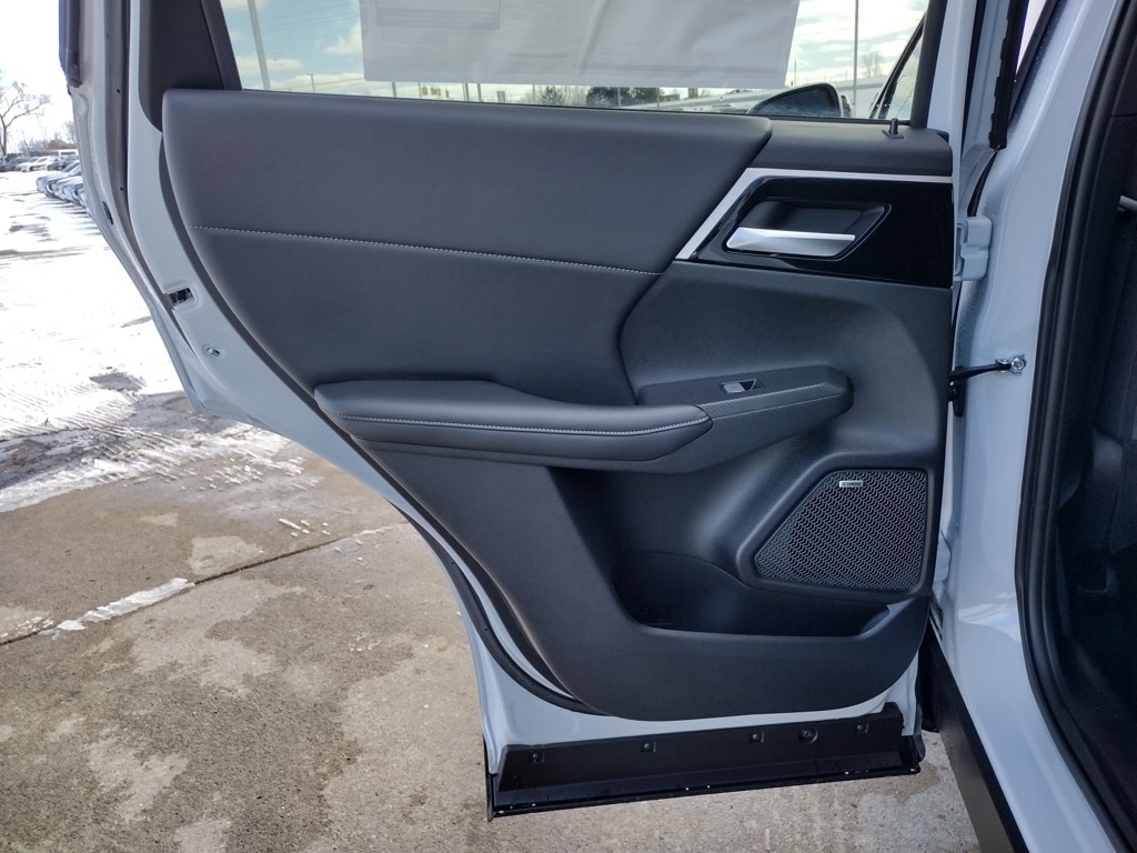 The interior offers seating for seven with synthetic leather suede seating surfaces, heated front seats, and a heated leather-wrapped steering wheel. Convenience and technology features include dual-zone automatic climate control, FAST-Key entry with push-button start, a 12.3-inch Smartphone-Link Display Audio system with navigation, wireless Apple CarPlay and Android Auto, a wireless smartphone charger, a Yamaha premium audio system, a multi-view camera system, and a drive mode selector with Normal, Eco, Tarmac, Gravel, Snow, and Mud modes.