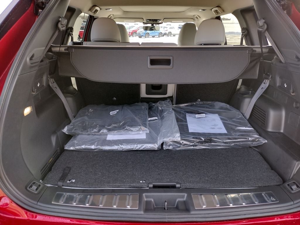 Red Diamond 2026 Outlander SE Tech includes Dynamic Yamaha Ultimate Sound System, 12.3" Full digital driver display and a power panoramic sunroof. Additional options include scuff plates, metal cargo scuff plates, grille paint protection film, tonneau cover, chrome hood emblem seatback organizer and welcome package with both all-weather and carpet floor mats, console tray mat, and touch up paint pen. Mitsubishi Motors Confidence ensures peace of mind with a 10-year/100,000-mile limited powertrain warranty, 5-year/unlimited mile roadside assistance, 2-year/30,000-mile limited maintenance (participating retailers only).