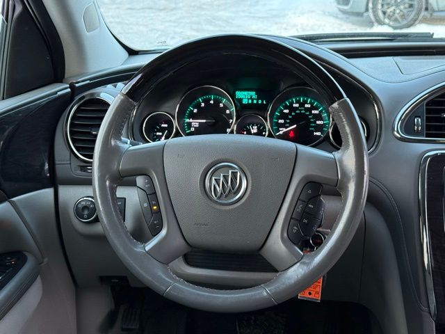 The Enclave's interior is a true sanctuary, with seating for up to seven passengers. Settle into the plush cloth seats and enjoy the convenience of power-adjustable front seats, a leather-wrapped steering wheel, and a rearview auto-dimming mirror. The split-folding third-row seat provides versatile cargo space, making this Enclave perfect for your family's needs.