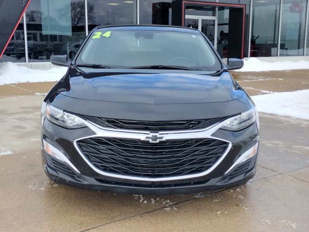 Mosaic Black Metallic 2024 Chevrolet Malibu RS FWD CVT 1.5L DOHC Jet Black Cloth.