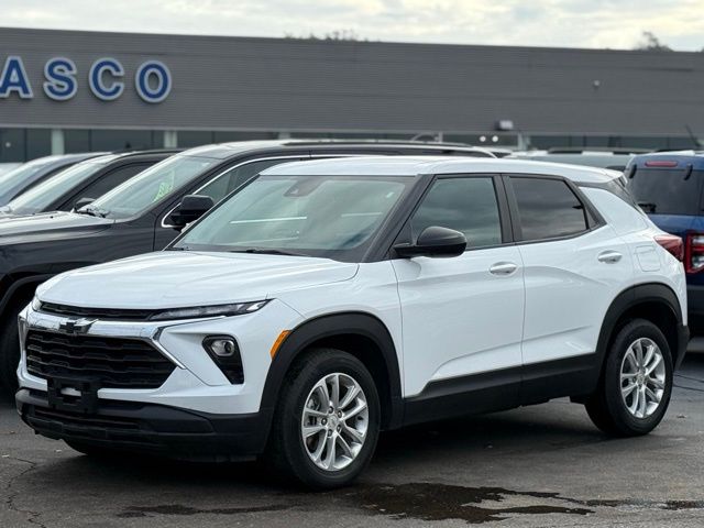 2024 Chevrolet Trailblazer LS in Summit White with a clean Black interior. This compact SUV is designed for efficiency, comfort and modern connectivity, making it an excellent choice for commuters, new drivers or anyone wanting a versatile and reliable vehicle. Powered by a 1.3L EcoTec Turbo engine and a smooth CVT transmission, the Trailblazer delivers impressive fuel economy, reaching up to 29 mpg in the city and 31 mpg on the highway.