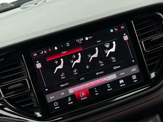 Step inside the Durango R/T and you'll be greeted by a spacious and well-appointed interior. The heated and ventilated front seats, along with the heated second-row seats, ensure everyone onboard enjoys exceptional comfort. The Uconnect 5 infotainment system with a 10.1" display puts advanced connectivity and navigation at your fingertips, seamlessly integrating your smartphone with Apple CarPlay and Android Auto.
