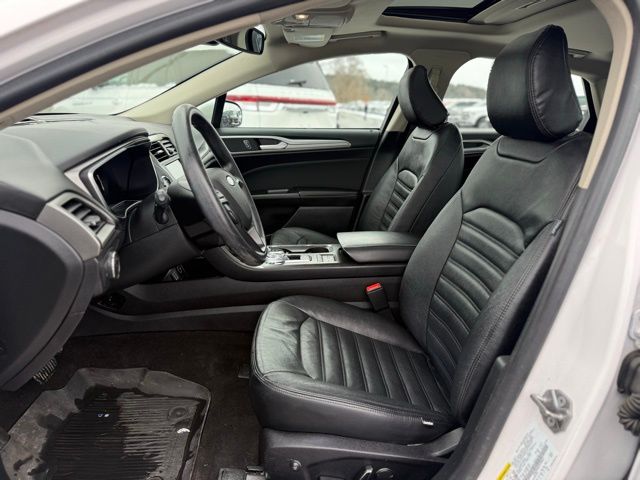 The interior of this Fusion SE is designed with your comfort and convenience in mind. Enjoy the luxury of the power moonroof, which allows you to soak in the natural light and fresh air. The Ford Co-Pilot360 Assist technology, including the Voice-Activated Touchscreen Navigation System and Adaptive Cruise Control, provides seamless connectivity and enhanced safety features, keeping you connected and in control.