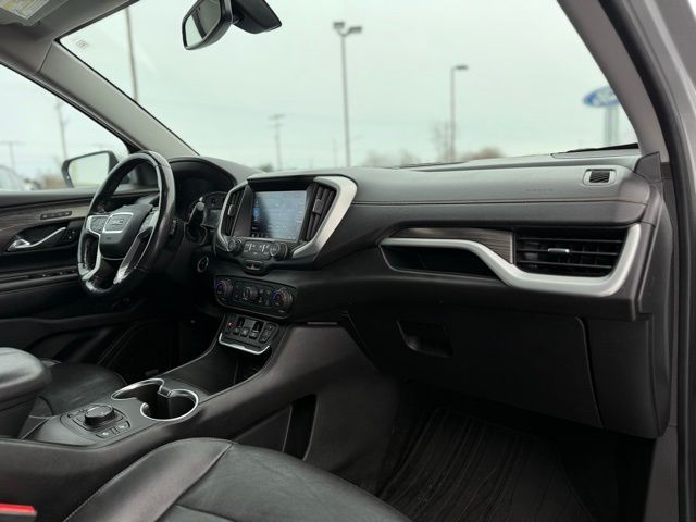 Designed for both style and substance, the Terrain SLT's exterior boasts a sleek, modern aesthetic with 19-inch machined aluminum wheels and a bold, commanding presence. The interior pampers you with perforated leather-appointed seating, heated front seats, and a heated steering wheel, creating an environment of unparalleled comfort and refinement.
