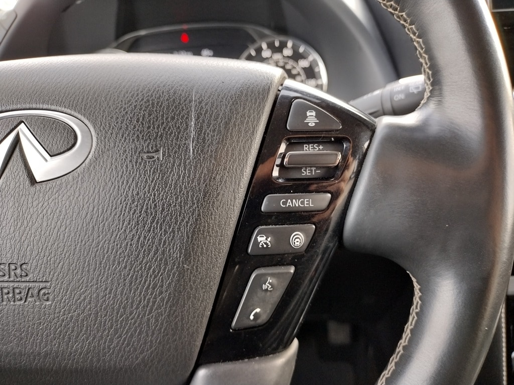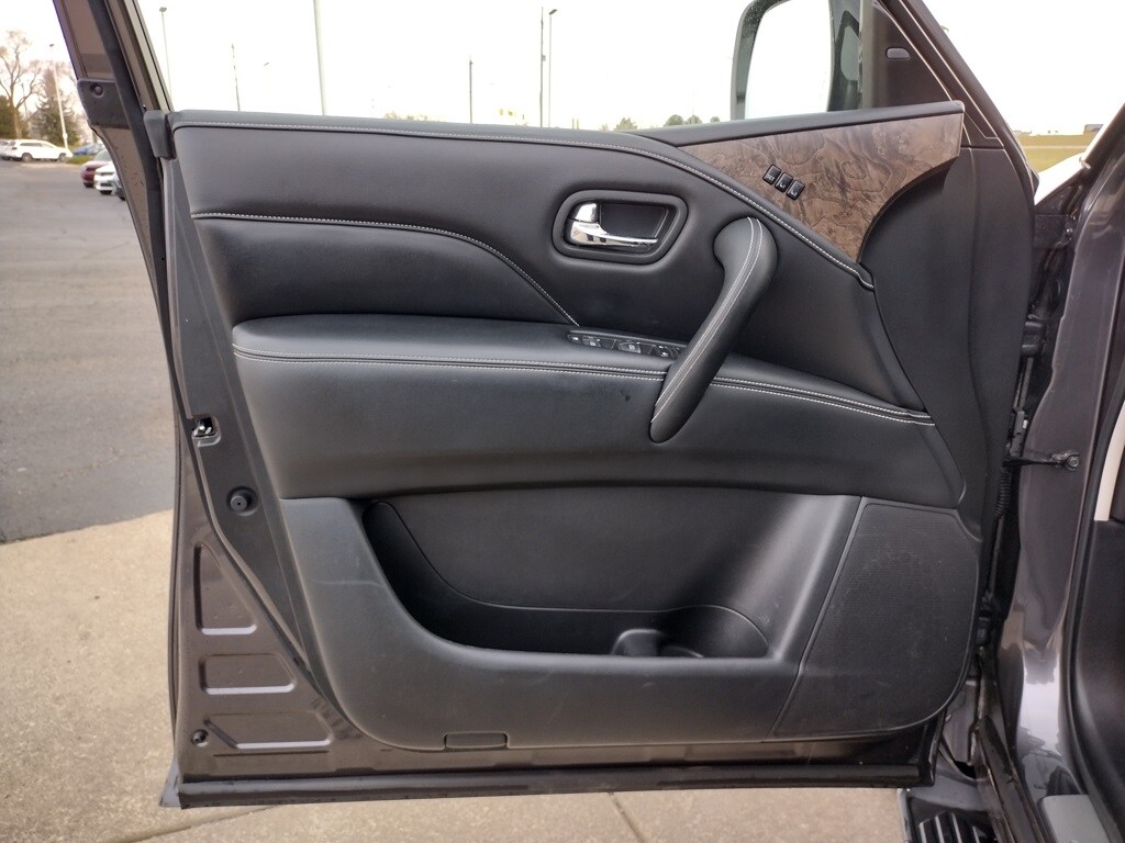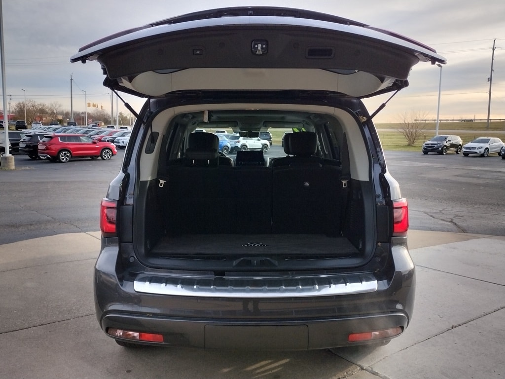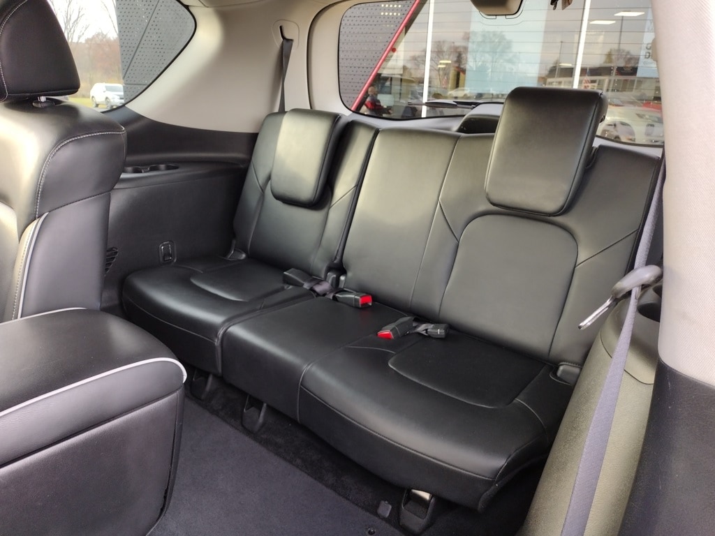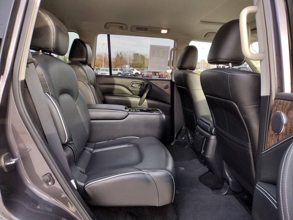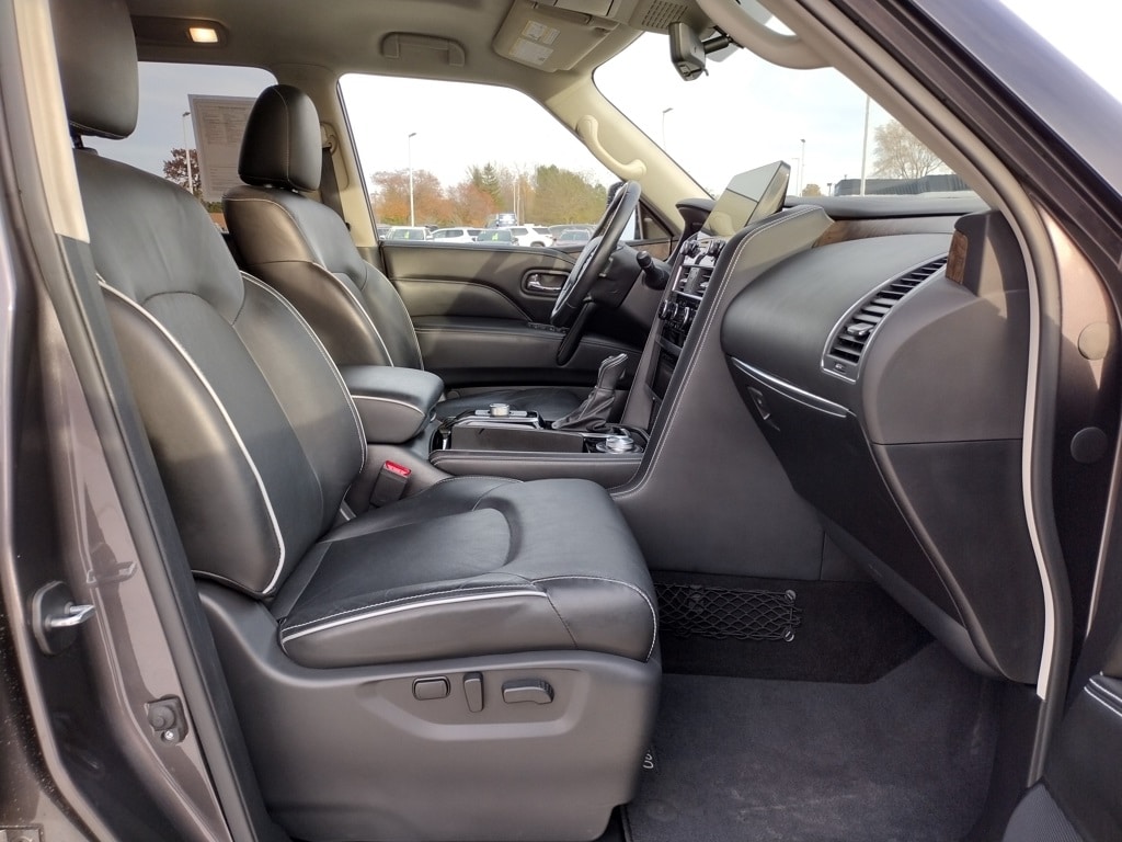 2022 INFINITI QX80 PREMIUM SELECT Full-Size Luxury SUV with V8 Power, 4WD and Premium Features Anthracite Gray paint 5.6L V8 engine, 7-speed automatic transmission, Automatic full-time four-wheel drive, Brake-actuated limited-slip differential, Air suspension,Sunroof, LED headlights and daytime running lights, Automatic high-beams, Fog lamps, Heated, power-folding side mirrors with turn indicators, Running boards, Rear spoiler, Privacy glass, Tow hooks and factory tow hitch, Roof rails, 9,000+ lb towing capability (when properly equipped), 26-gallon fuel tank, Skid plate and permanent locking hubs, Leather-appointed seats, Heated front seats, Heated steering wheel, Power driver and passenger seats with adjustable lumbar, Driver and passenger seat memory, Woodgrain interior trim, Auto-dimming rearview mirror, Illuminated vanity mirrors,Second-row bucket seats, Third-row seating, Apple CarPlay and Android Auto, Premium audio system, Bluetooth connectivity, Satellite radio and HD Radio, Navigation system, WiFi hotspot, Telematics system, Smart device integration, Aerial View Display System (around-view camera), Steering wheel audio controls, MP3 capability, Universal garage door opener, 20inch Aluminum Rims.
