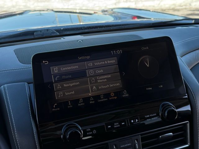 Step inside the QX80 Premium Select and be enveloped in a world of uncompromising luxury. The premium audio system from Bose, featuring 13 high-quality speakers, delivers an immersive listening experience. Stay connected with the advanced INFINITI InTouch Navigation system, while enjoying the convenience of dual-zone automatic climate control, a power liftgate, and a panoramic moonroof.