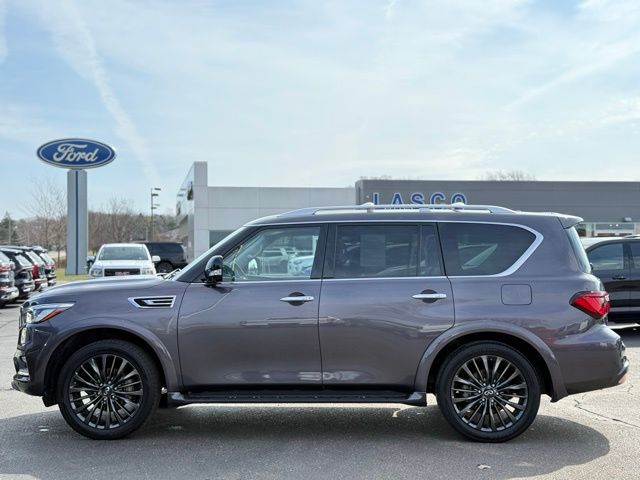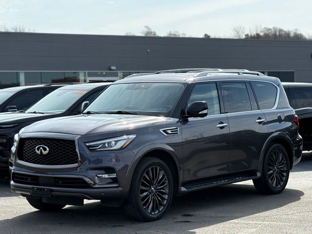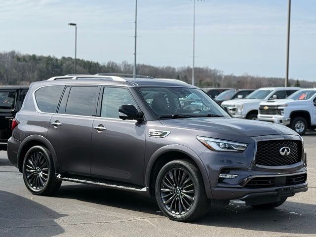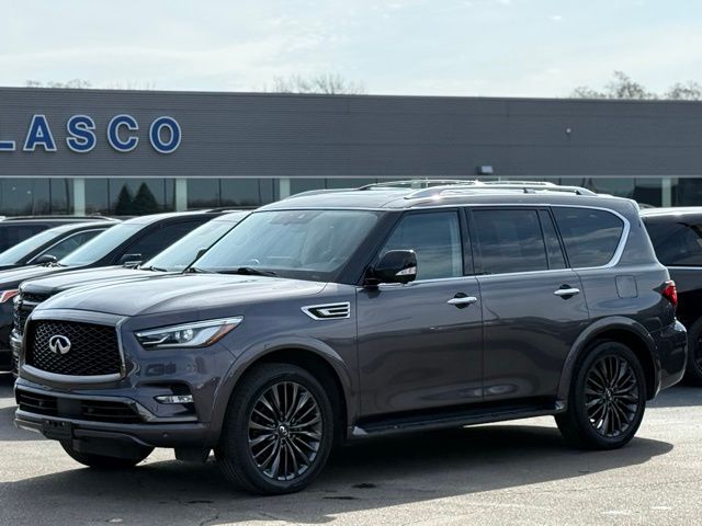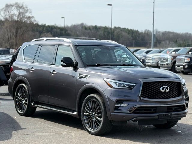 Discover the exceptional 2022 INFINITI QX80 Premium Select, a commanding presence on the road that combines unparalleled luxury, advanced technology, and exceptional capability. This stunning SUV is the perfect blend of sophistication and power, ready to elevate your driving experience.