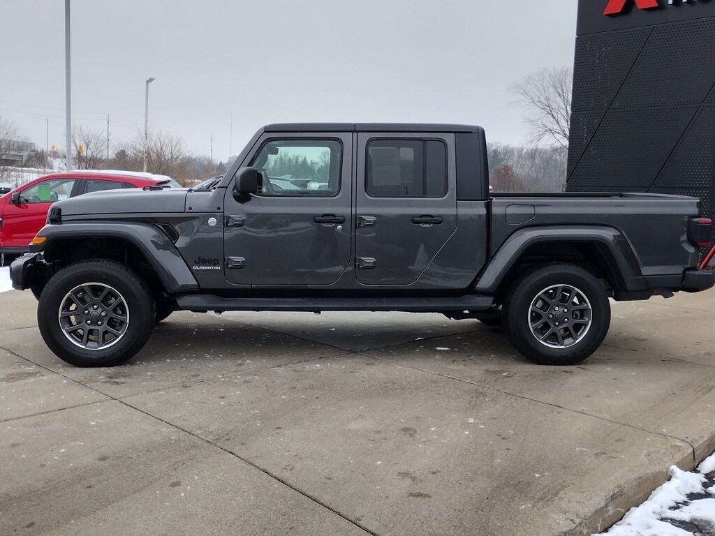 2021 Jeep Gladiator Overland Crew Cab Medium Bed Granite Crystal Metallic Cloth Interior, UCONNECT 4C NAV & SOUND GROUP, AM/FM Radio, Auto-Dimming Rearview Mirror, Bluetooth Connection, HD Radio, Navigation System, Premium Sound System, Satellite Radio, Telematics, Daytime Running Lights, Fog Lamps, LED Headlights COLD WEATHER GROUP, Heated Steering Wheel, TRAILER TOW PACKAGE, Tow Hitch, Sliding Rear Window, Targa Roof, Rear Defrost, Running Boards, Intermittent Wipers, Variable Speed Intermittent Wipers, Aluminum Wheels, Keyless Entry, Keyless Start, Power Door Locks, Remote Engine Start, Smart Device Integration, Cruise Control, Power Windows, Power Door Locks, Multi-Zone Climate Control, Air Conditioning, Auxiliary Audio Input, Satellite Radio, MP3 Capability, Steering Wheel Audio Controls, 8 Speakers