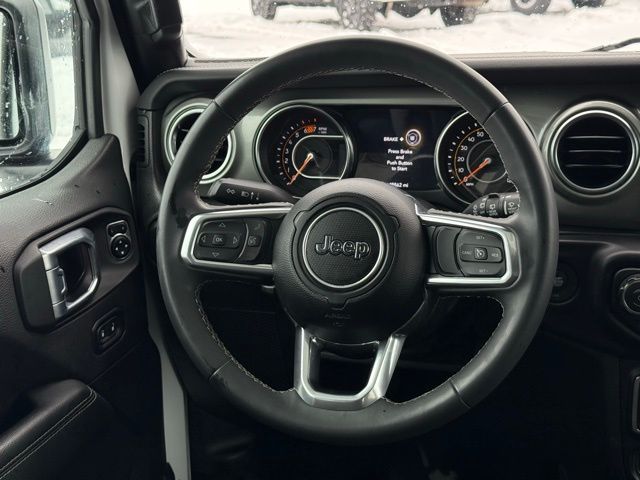 Powered by a 2.0L I4 DOHC engine and equipped with an 8-Speed Automatic transmission and 4WD, this Wrangler Sahara delivers an impressive balance of power and efficiency, with a city MPG of 21 and a highway MPG of 24. The Heavy Duty Suspension with Gas Shocks ensures a smooth and confident ride, whether navigating city streets or conquering off-road terrain.